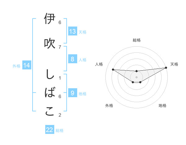伊吹 しばこさんの天格は13画の5点!