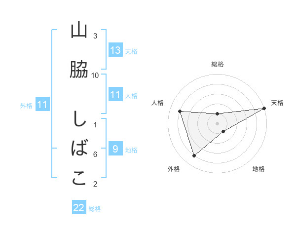 山脇 しばこさんの総格は22画の1点!