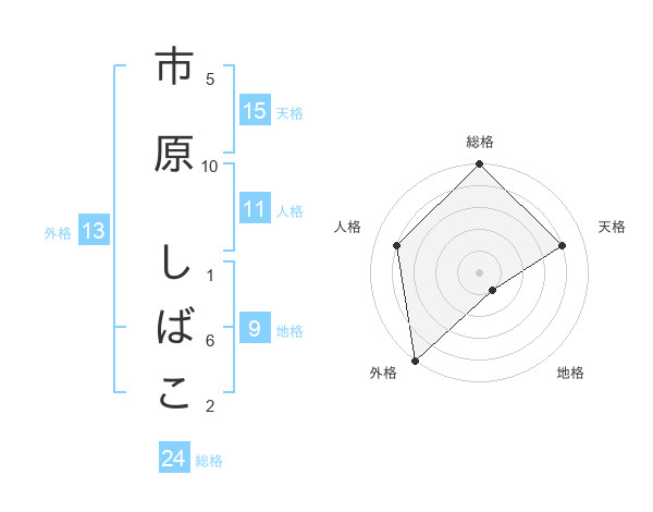 市原 しばこさんの外格は13画の5点!