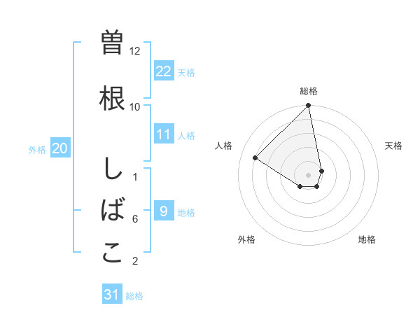 曽根 しばこさんの総格は31画の5点!