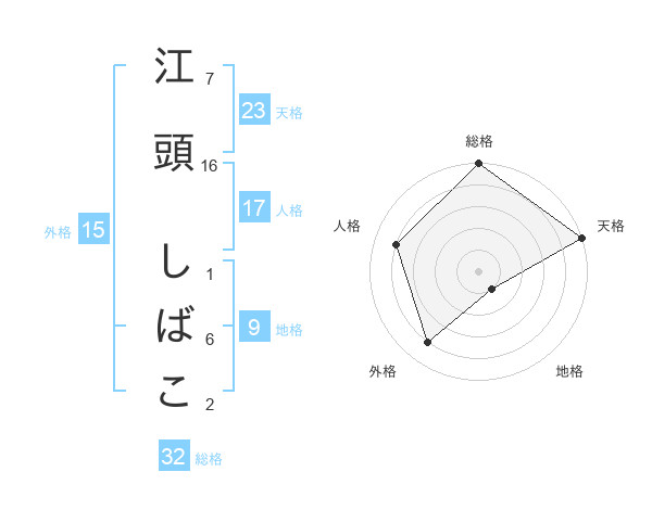 江頭 しばこさんを姓名の画数から五運を鑑定