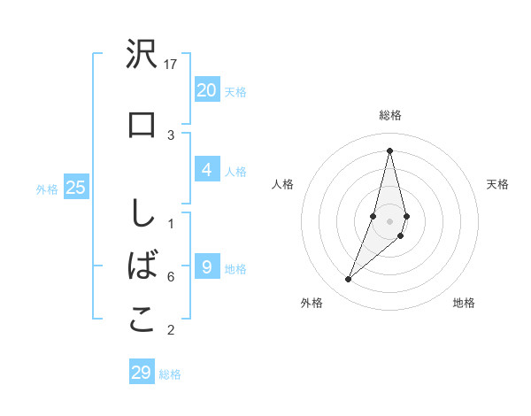 沢口 しばこさんの総格は29画の4点!
