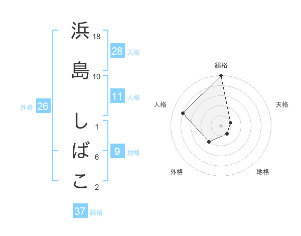 浜島 しばこさんの総格は37画の5点!