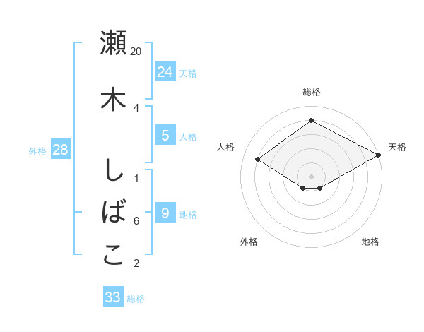 瀬木 しばこさんを姓名の画数から五運を鑑定
