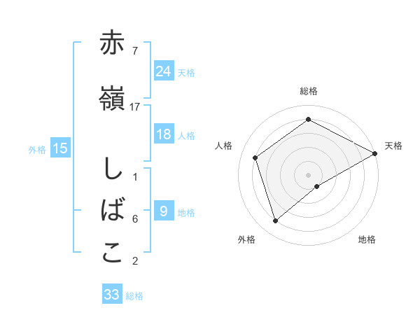 赤嶺 しばこさんを姓名の画数から五運を鑑定