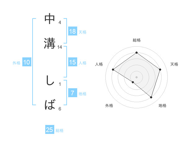 中溝 しばさんの天格は18画の4点!