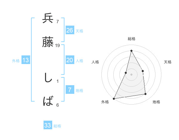 兵藤 しばさんを姓名の画数から五運を鑑定
