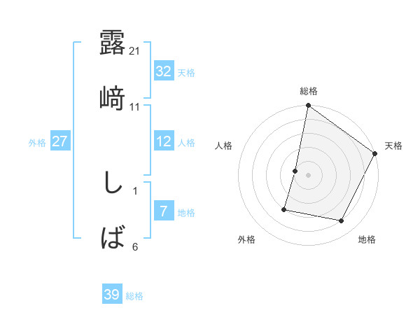 露﨑 しばさんを姓名の画数から五運を鑑定