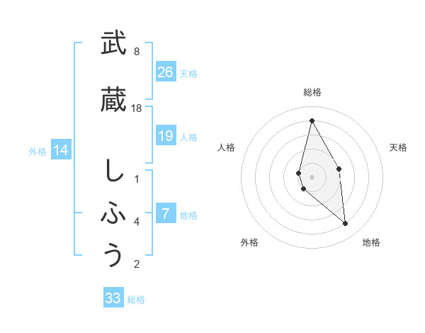 武蔵 しふうさんを姓名の画数から五運を鑑定