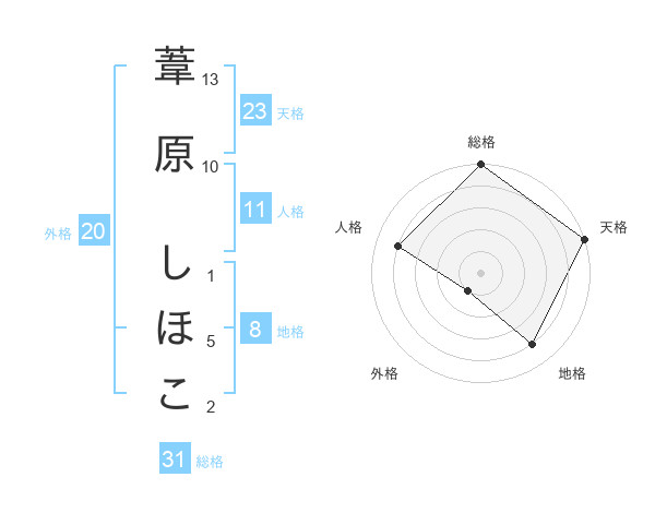 葦原 しほこさんを姓名の画数から五運を鑑定