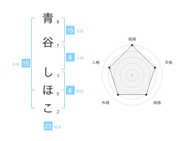 青谷 しほこさんを姓名の画数から五運を鑑定