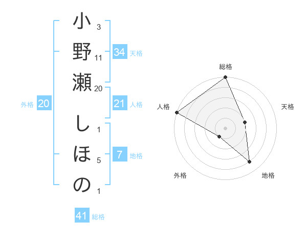 小野瀬 しほのさんを姓名の画数から五運を鑑定