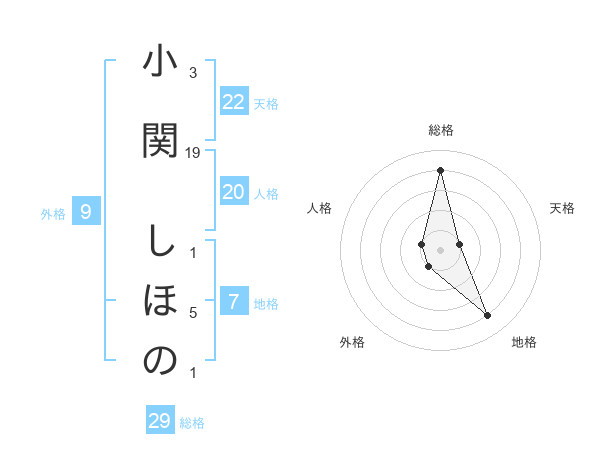 小関 しほのさんの総格は29画の4点!