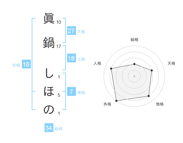 眞鍋 しほのさんを姓名の画数から五運を鑑定