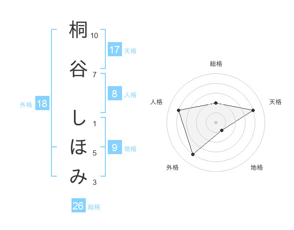 桐谷 しほみさんを姓名の画数から五運を鑑定