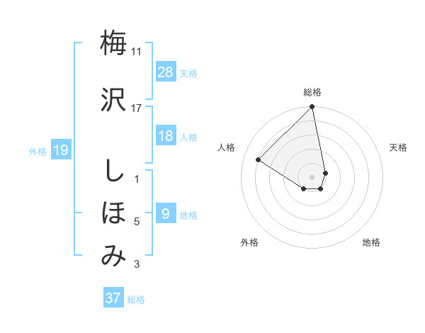 梅沢 しほみさんを姓名の画数から五運を鑑定