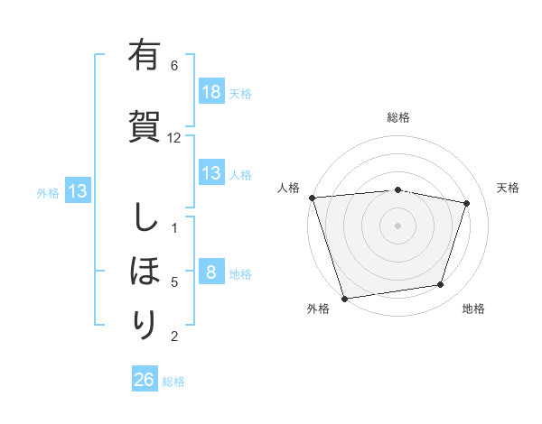 有賀 しほりさんの外格は13画の5点!