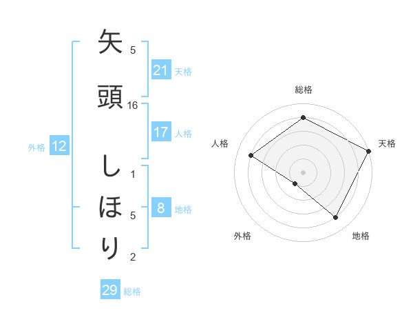 矢頭 しほりさんの天格は21画の5点!
