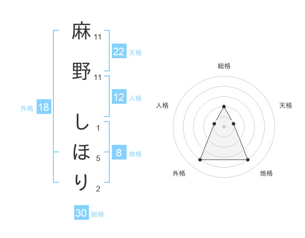麻野 しほりさんの天格は22画の1点!