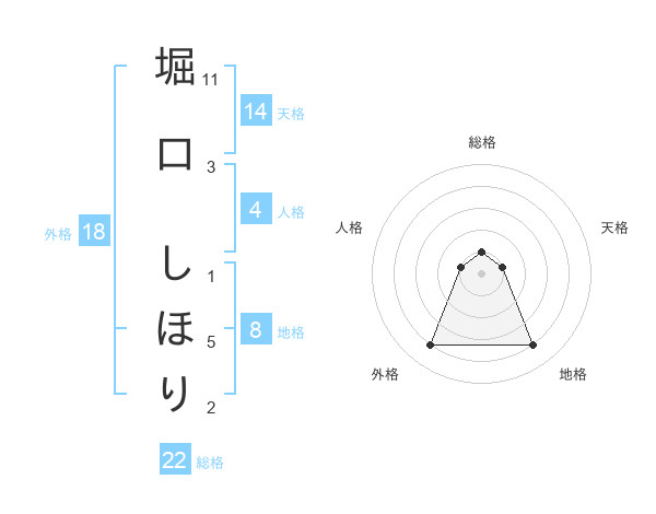 堀口 しほりさんの総格は22画の1点!