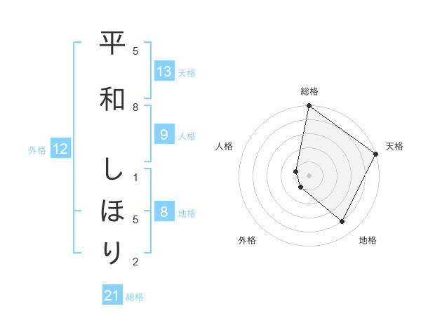 平和 しほりさんの天格は13画の5点!