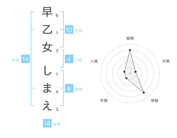 早乙女 しまえさんの総格は18画の4点
