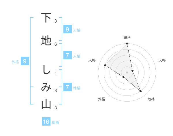 下地 しみ山さんの総格は16画の5点!