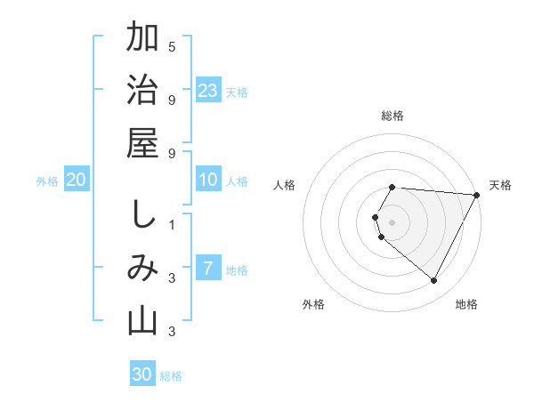 加治屋 しみ山さんを姓名の画数から五運を鑑定