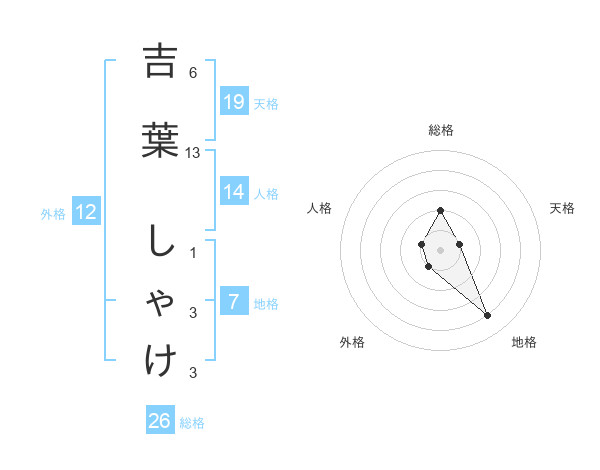 吉葉 しゃけさんを姓名の画数から五運を鑑定