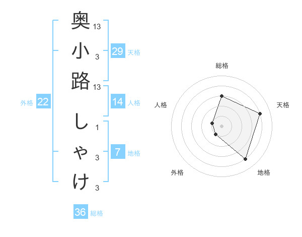 奥小路 しゃけさんを姓名の画数から五運を鑑定