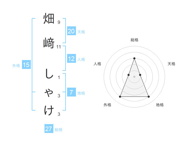 畑﨑 しゃけさんを姓名の画数から五運を鑑定