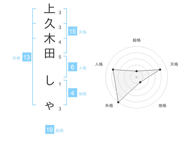 上久木田 しゃさんを姓名の画数から五運を鑑定