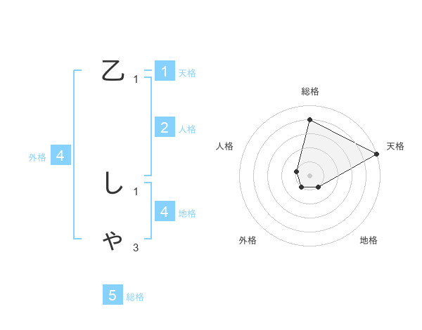 乙 しゃさんの天格は1画の5点!