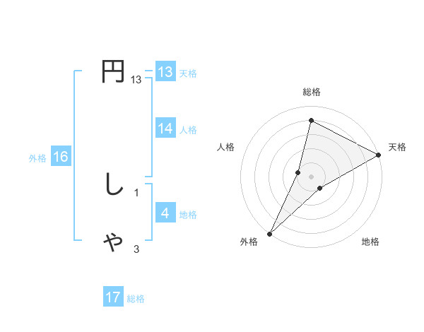 円 しゃさんの天格は13画の5点!