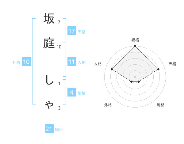 坂庭 しゃさんの総格は21画の5点!