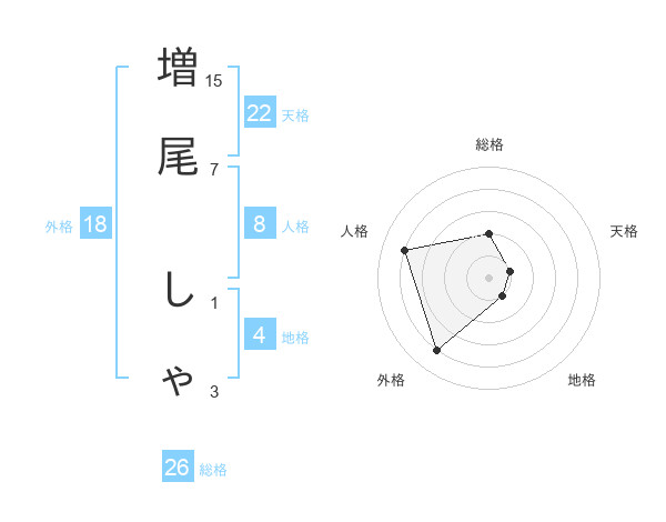 増尾 しゃさんの外格は18画の4点!