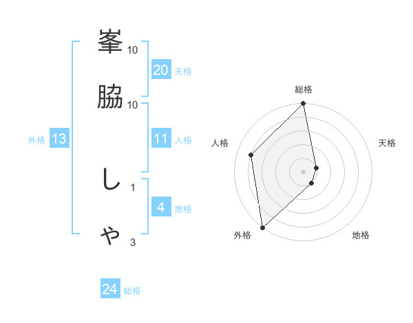峯脇 しゃさんを姓名の画数から五運を鑑定