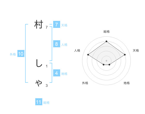 村 しゃさんの天格は7画の4点!