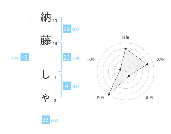 納藤 しゃさんを姓名の画数から五運を鑑定