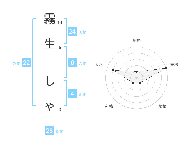 霧生 しゃさんの天格は24画の5点!