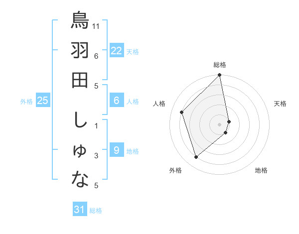 鳥羽田 しゅなさんを姓名の画数から五運を鑑定