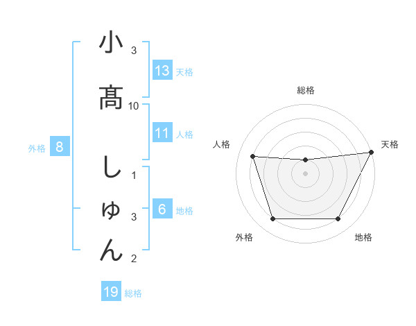 小髙 しゅんさんを姓名の画数から五運を鑑定