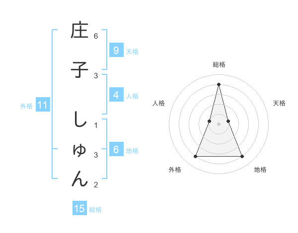 庄子 しゅんさんの総格は15画の4点!