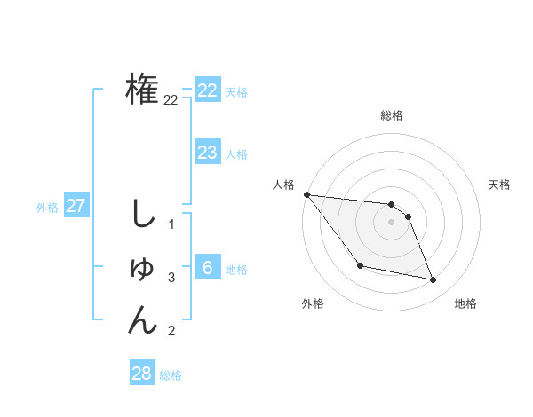 権 しゅんさんの総格は28画の1点!