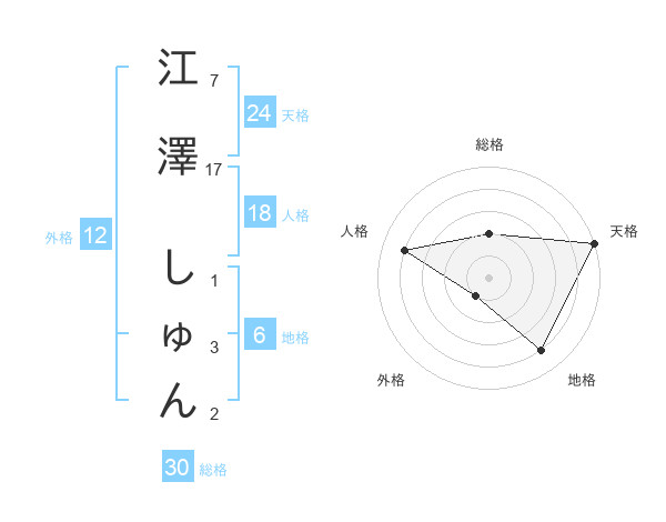 江澤 しゅんさんを姓名の画数から五運を鑑定
