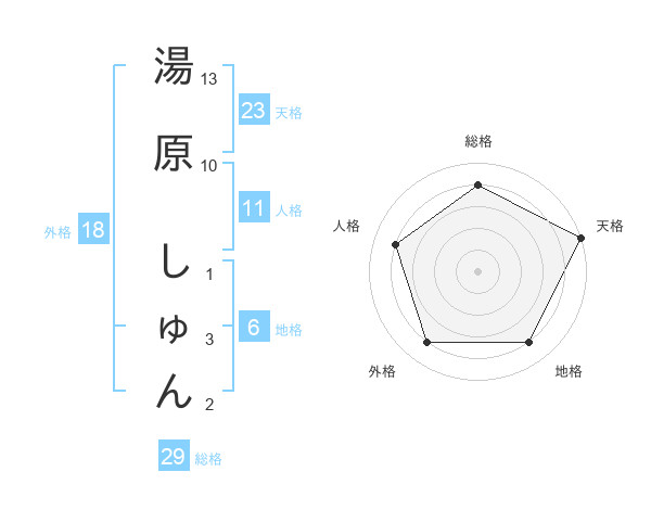 湯原 しゅんさんの天格は23画の5点!