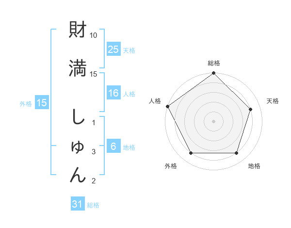財満 しゅんさんの総格は31画の5点!