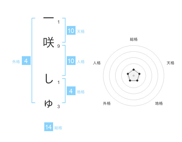 一咲 しゅさんを姓名の画数から五運を鑑定
