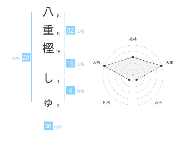八重樫 しゅさんの天格は32画の5点!