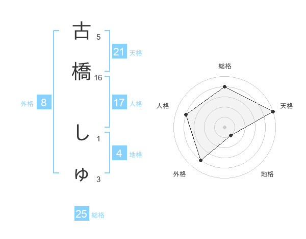 古橋 しゅさんを姓名の画数から五運を鑑定